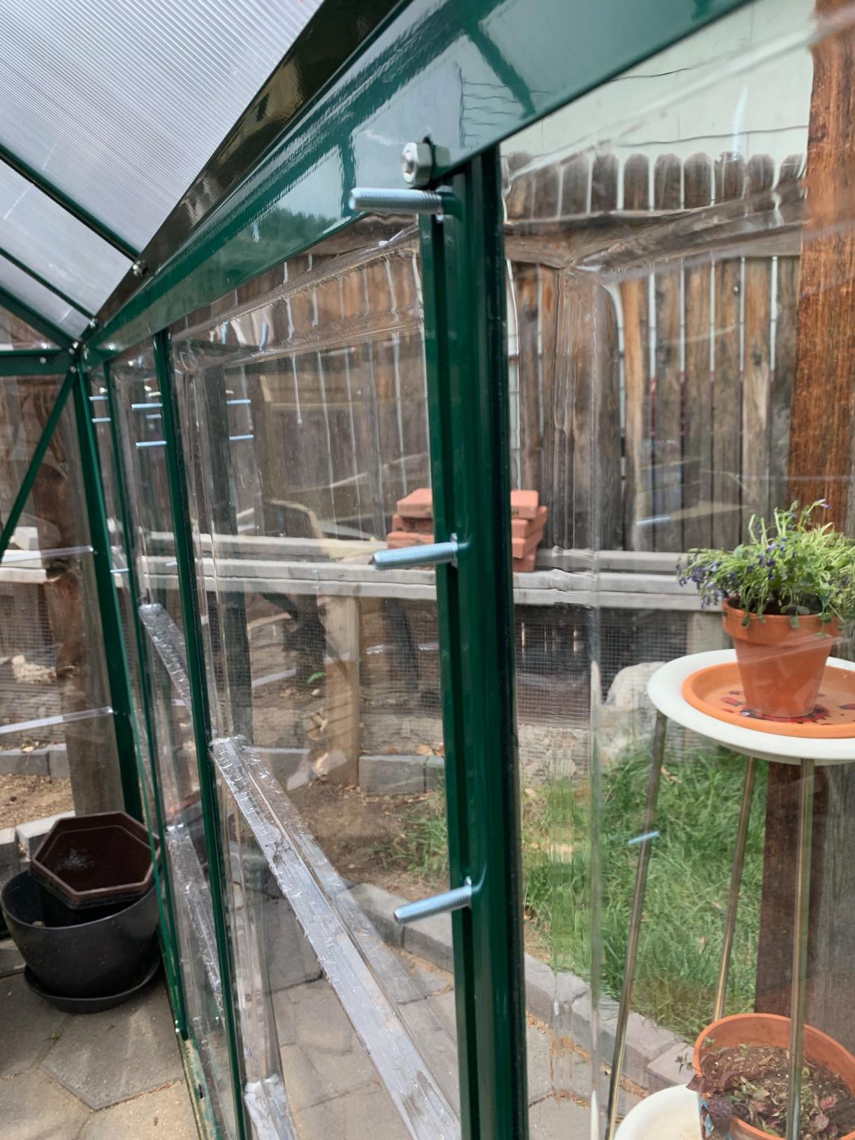 Answer:It is not, utilizing two doors would be a safety risk. When you introduce a second door, you are losing full functionality of the back wall, which lowers the overall stability of the greenhouse.Question:have palram hybrid 6x8x7 greenhouse green-going to heat it this winter. do we need to remove the automatic vent to keep heat in?