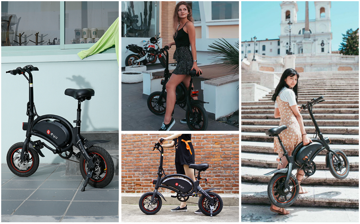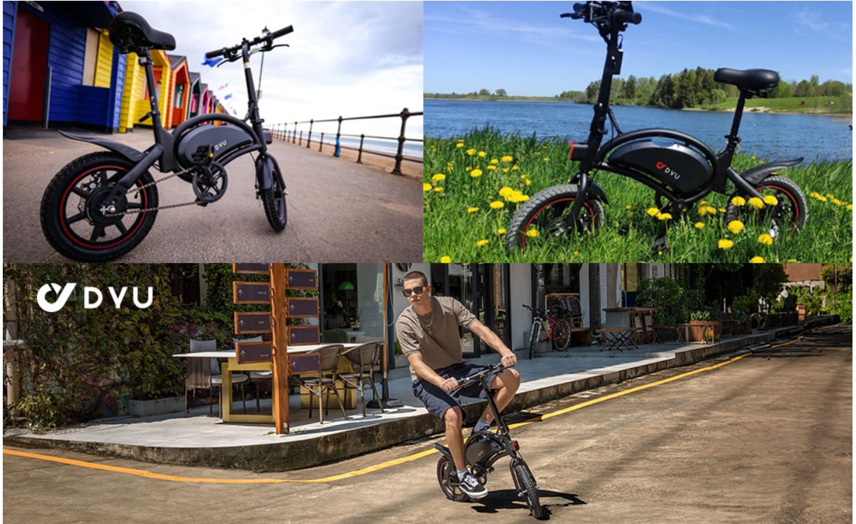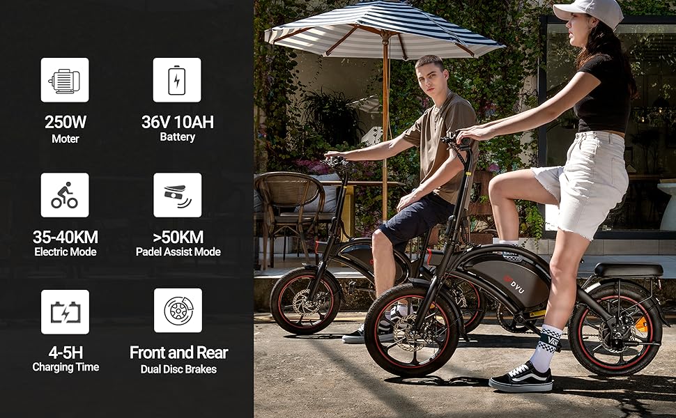 DYU Folding Electric Bike, 14 inch Portable E-bike, Smart Electric Bicycle with Pedal Assist, 3 Riding Modes City EBike with Battery Indicator, Height Adjustable, Compact Portable, Unisex Adult