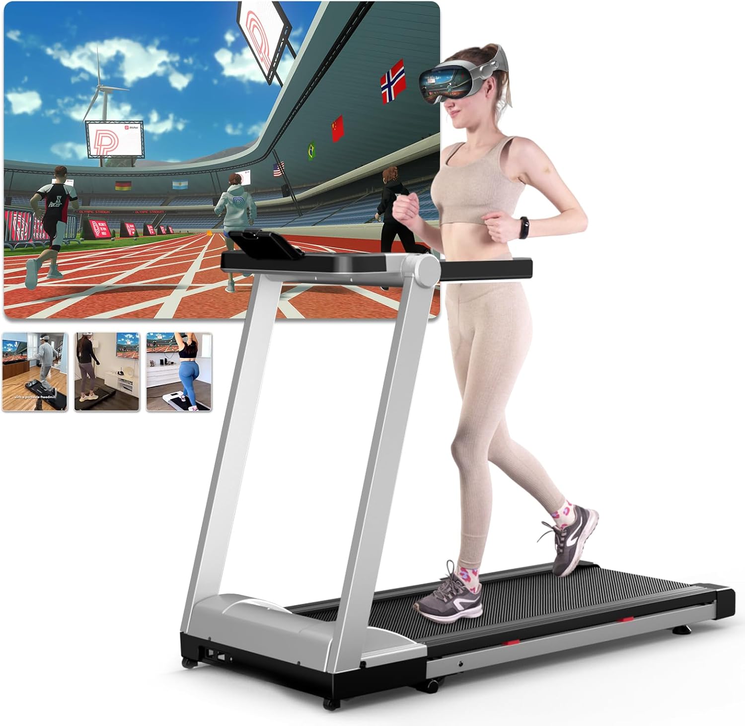Superun Raceable Treadmill for Home Foldable, Folding Treadmill Suitable for High-Tech Equipment,Incline Treadmill 158 KG Weight Capacity, Running Machine with Training Courses and Multi-Runner Races