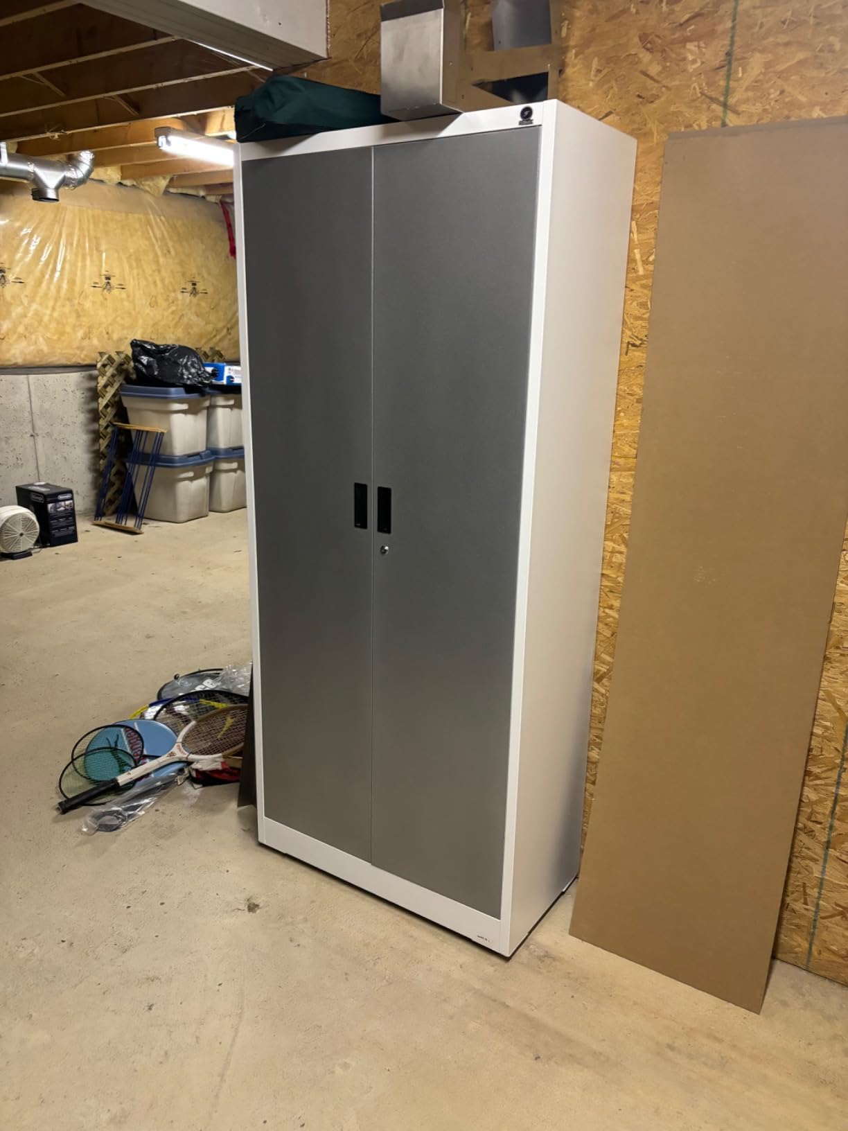 I bought this for my husbands tinker projects and other tools and materials so he had a place to store things in a safe environment. The cabinet was easy to assemble, sturdy, and the doors open and shut with ease. Ours did come with a few dents in the side due to delivery, but it still operates perfectly fine.