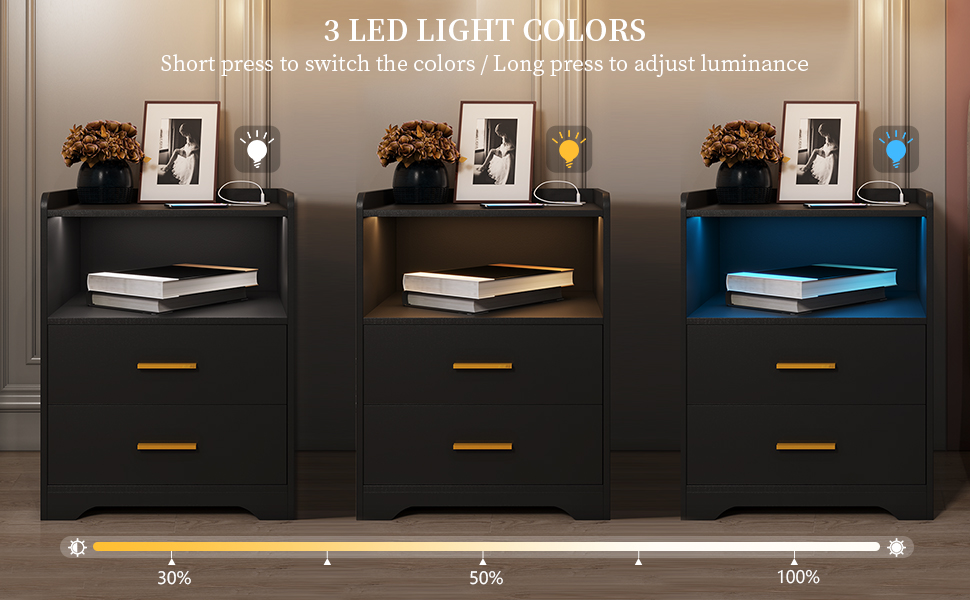 Our bedside table comes in 3 colors of atmospheric light(Blue Light/Warm Light/White Light), it's beautiful and stylish no matter day or night! Have a side table like this, it will catch everyone's eyes and make your friends, families, or colleagues envious.