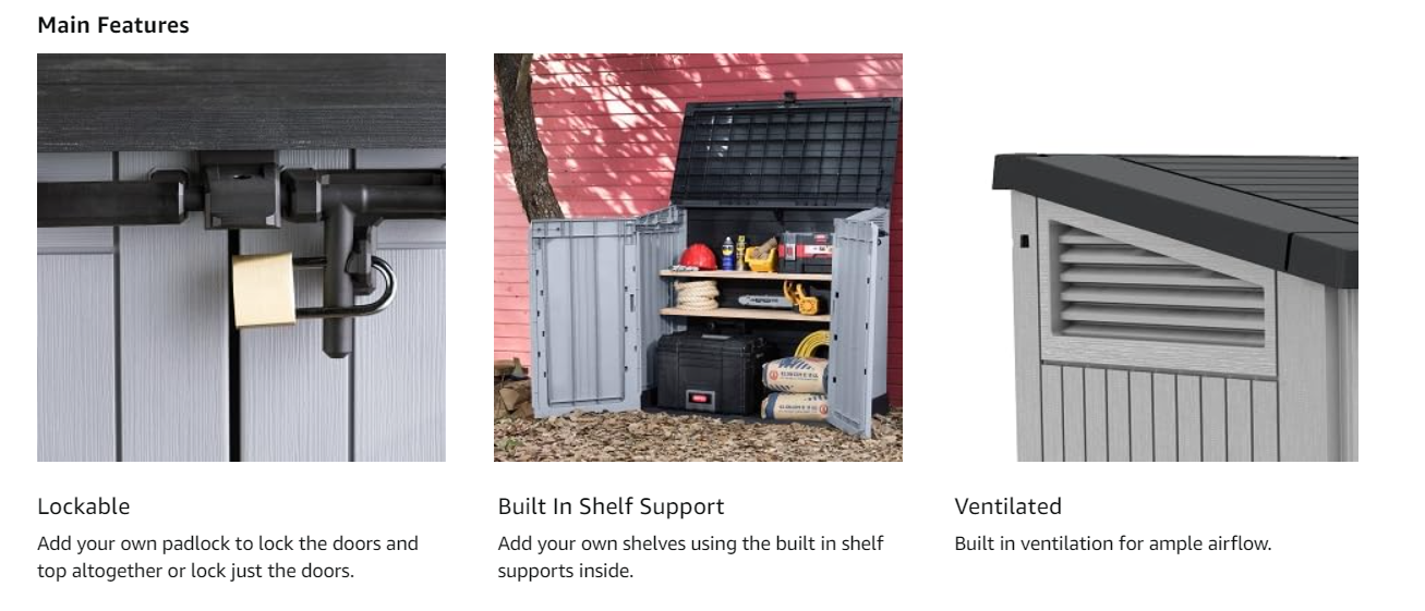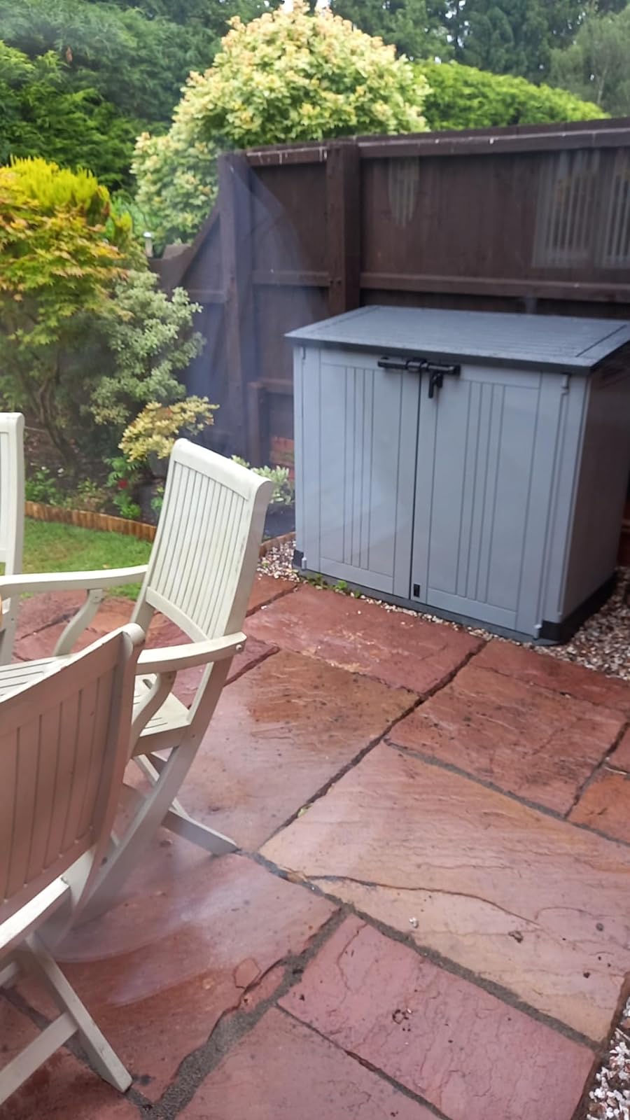 - Ideal outdoor storage solution for garden tools and equipment, BBQ and accessories and x2 120L wheelie bins.