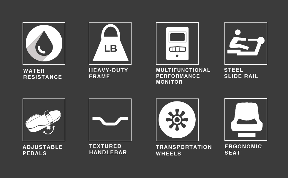• WATER RESISTANCE: The water tank holds water at a 60-degree angle with 16 hydro blades that provides resistance.