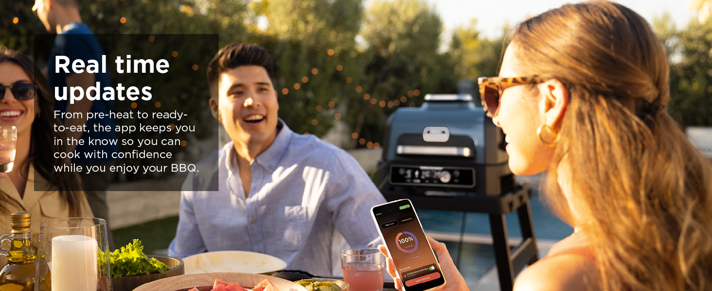 Ninja Woodfire Pro Connect XL Electric Grill and Smoker with App Control, Digital Probe, Large 7-in-1 Outdoor Grill and Air Fryer with Woodfire Pellet, Weather Resistant, Blue and Black OG901UK
