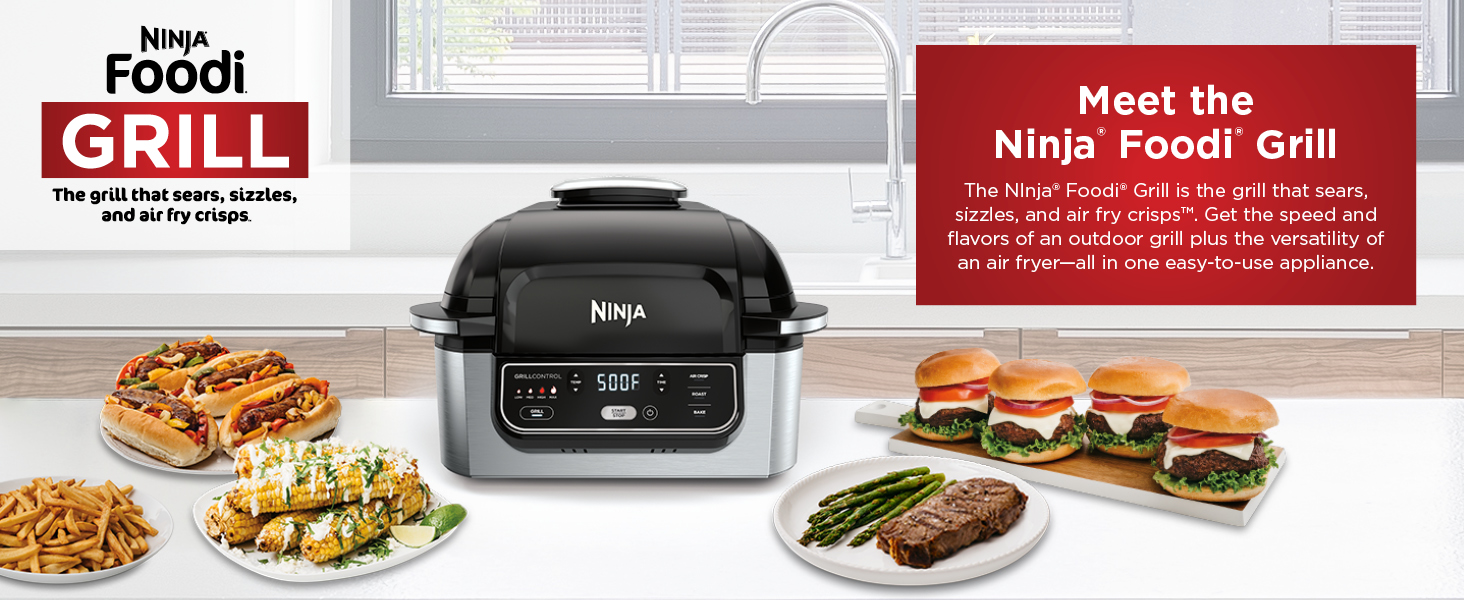 - THE ORIGINAL NINJA FOODI GRILL: The grill that sears, sizzles, and air fry crisps. Indoor grill and air fryer.